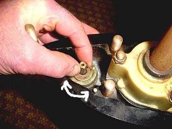 If you have not separated the upper and lower housings. Feel the left to right looseness in the brass shift lever located in the upper housing. Keep this looseness in mind.