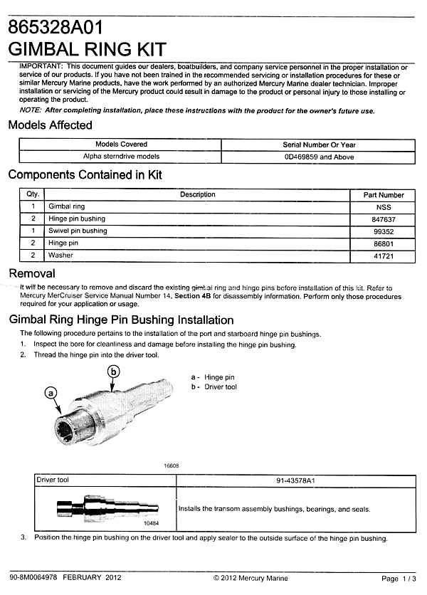 Gimbal Ring Kit 865328A01 Bushings