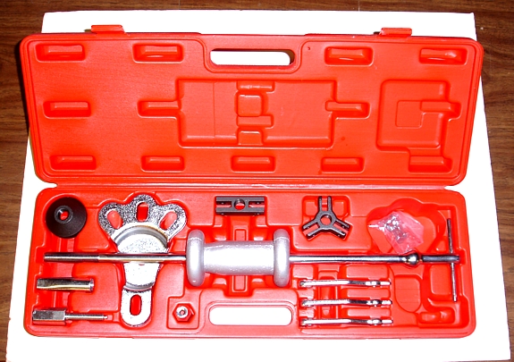 kit comes in its own carrying case. It comes with a 5 pound hammer and has 17 pieces for all types of pulling