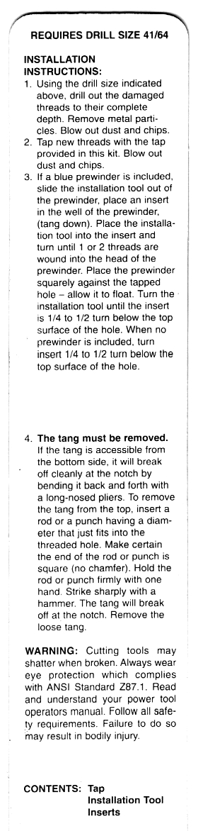 chips in the outdrive oil. The tang which is used to install these inserts